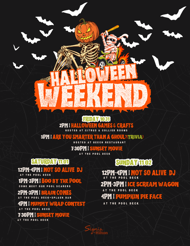 Join us for a weekend of Halloween fun with themed treats, festive décor, and family-friendly activities.